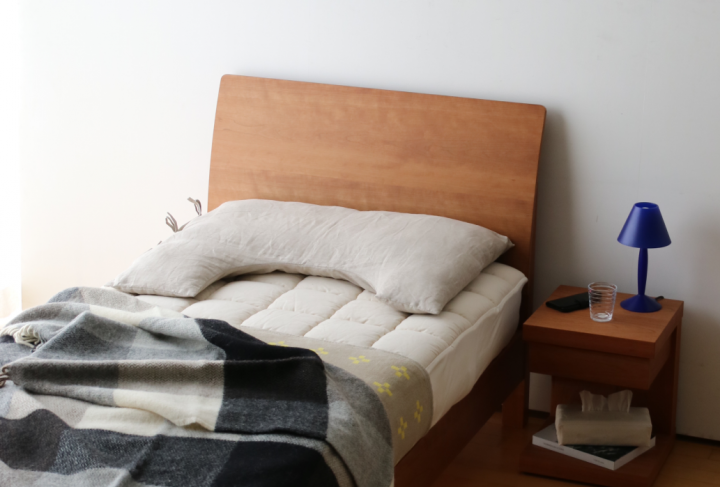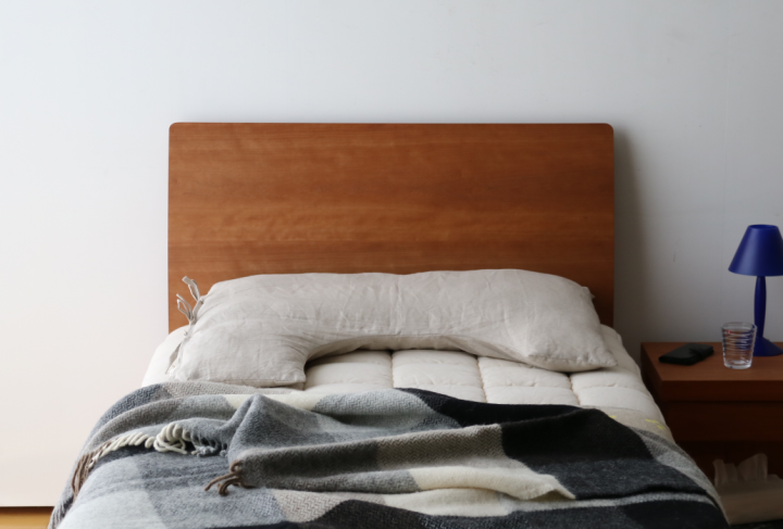 肝心な素材感は、特別に突板をオーダーしているため、上質で美しい木目を楽しむことができます。ヘッドフレームの面積がそれなりに大きいため、枕を置いても見えるヘッドの美しさは大事な部分の1つ。オススメはブラックチェリー材。経年変化で濃い飴色に変化していくに連れて愛着が増していきます。他にはウォールナットにオーク、アッシュ材。人気のグレイッシュなカラーもご用意しております。(すべて同価格)